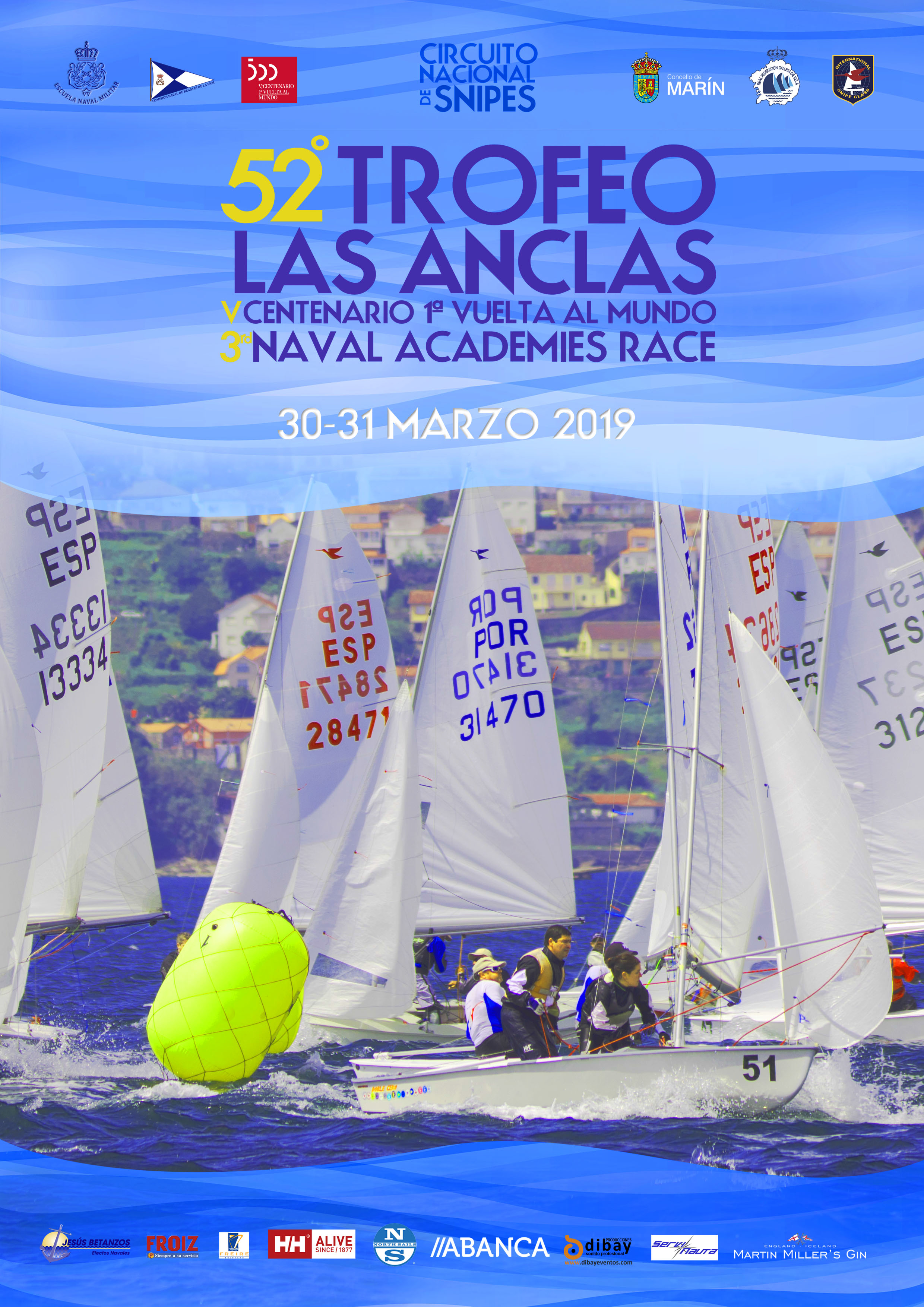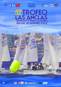52º Trofeo LAS ANCLAS de Snipe 2019 Facebook Twitter Google+ 52º Regata Trofeo «Las Anclas» clase Snipe – V Centenario 1ª vuelta al mundo 3ª Naval Academies Race Comisión Naval de Regatas de la Escuela Naval 30 y 31 de Marzo 2019 Anuncio de regata 52º LAS ANCLAS 2019 Hoja Inscripción Las Anclas 2019 Instrucciones de Regata La Anclas 2019 Sailing Instructions Las Anclas 2019 Plano ENM, parking, oficina Regatas,etc…. Clasificaciones Galería de Fotos «Las Anclas» Año 2018 Facebook Twitter Google+