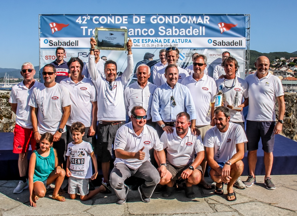 Baiona, 25 de julio de 2017 .- El Aceites Abril de los hermanos Luis y Jorge Pérez Canal logró revalidar este martes su título de campeón del Conde de Gondomar, un trofeo que el barco del Real Club Náutico de Vigo ya había ganado en dos ediciones anteriores, en los años 2013 y 2016.
