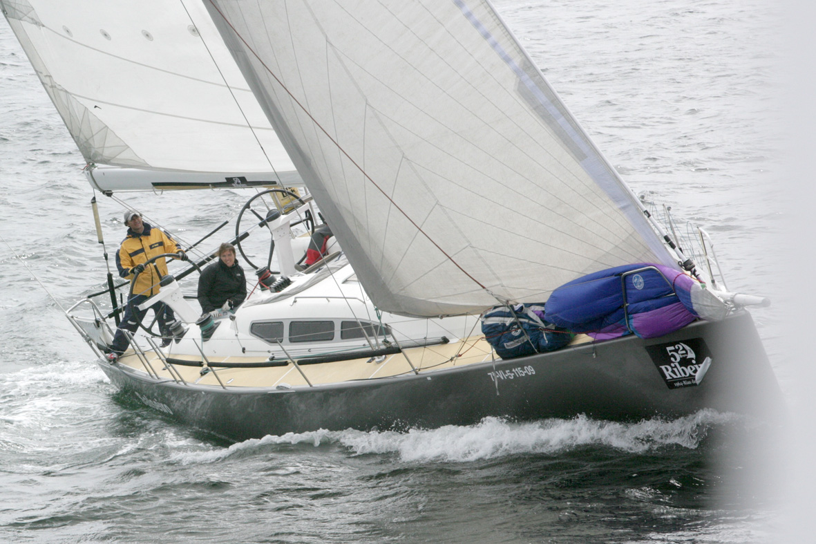 En una jornada lluviosa que sin embargo dio un respiro a la hora de la salida como preveían los partes meteorológicos manejados por el comité de regatas, la goleta “Peregrina” marcó las cuatro salidas de la flota con puntualidad, registrando un pequeño impasse entre la primera y segunda salida (la de las clases 3 y 4 más los J80) al abandonar el puerto un mercante. La coordinación entre comité de regatas y prácticos fue perfecta y dio lugar a una estampa tan curiosa como observar desde las zonas más elevadas de la ciudad a un coloso escoltado por decenas de velas.