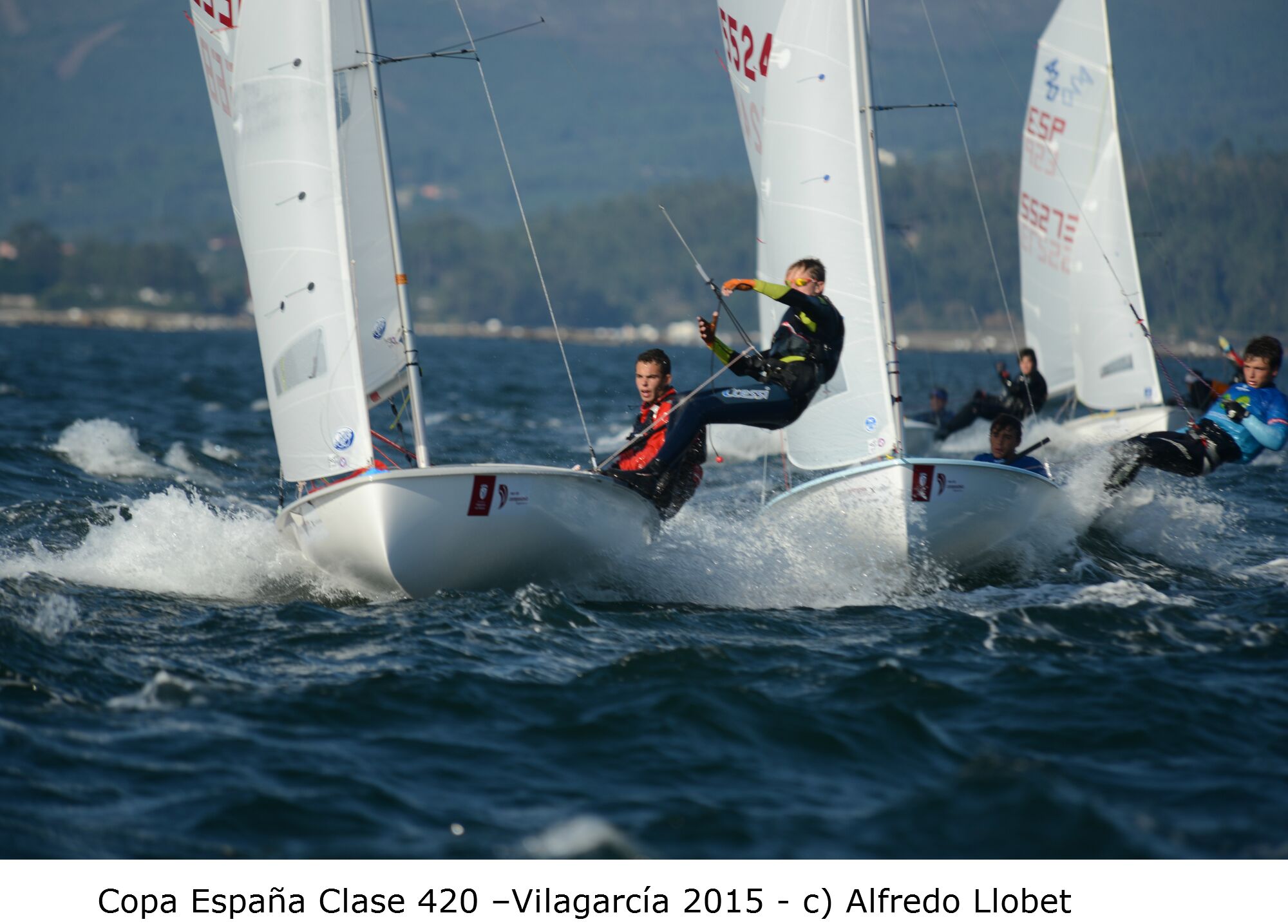 Excelentes condiciones de viento en el campo de regatas de la ría de Arousa durante la “fase final” de la Copa de España de 420, de unos 18 nudos de intensidad del noreste. Lo que ha permitido disputar las tres pruebas de la “fase final” según el horario previsto.
