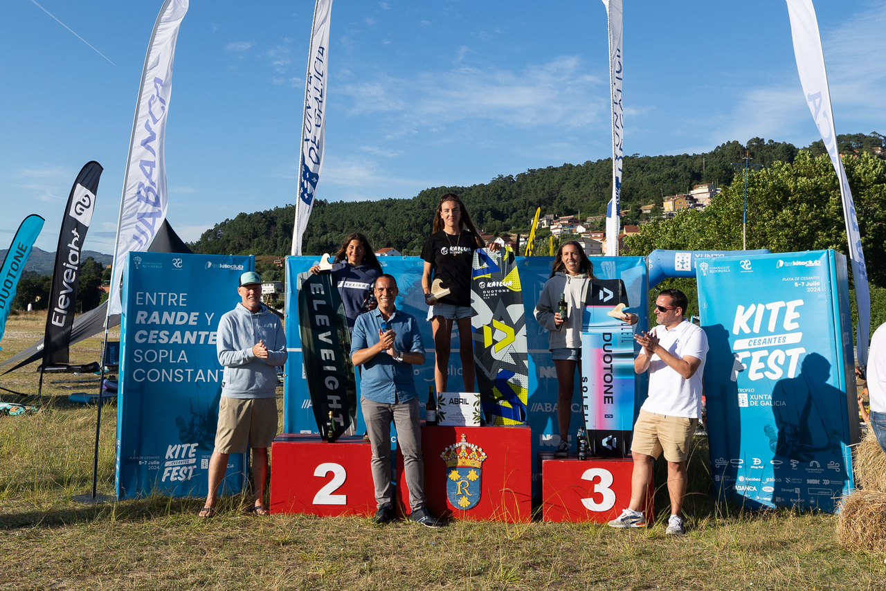 Cuarta en la general absoluta, Patri Suárez (RCN de Vigo) ha demostrado que conoce bien el campo de regatas de la ensenada de San Simón y se sube a lo más alto del podio femenino de Twintip –además de ser cuarta en Kite Foil absoluto-. Vera Vázquez repite la segunda plaza del año pasado para llevarse nuevamente la plata mientras que Alejandra Suárez (MRCY Baiona) termina tercera.