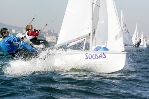 La mejor tripulación gallega en el grupo azul es la fotrmada por Alejandro San Martín y Luis Sampedro (RCN Vigo), en quinto lugar, frente a la sexta plaza en el amarillo de otro barco del Náutico, el de Jaime Lusquiños y Iago García. +INFO