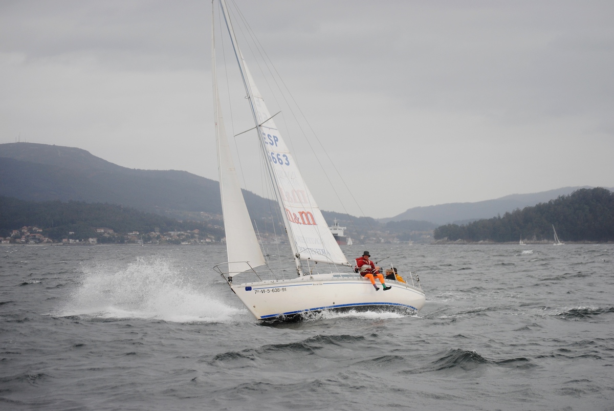 El aviso de entrada de temporal en las costas gallegas durante este pasado fin de semana mermó en casi la mitad la asistencia de los inscritos a la celebración de la primera prueba del XVIII Trofeo Navidad de Cruceros que comenzó este sábado 19 de noviembre en la Ría de Pontevedra organizado por el Real Club de Mar de Aguete. De todas formas la cosa no fue para tanto, sobre todo porque la regata se disputó bastante antes de la hora prevista de entrada del temporal y además el Comité de Regata dispuso unos recorridos que discurriesen muy al interior de la ría donde había menos mar y además bastante cortos para acabar antes de la hora del aviso meteorológico.
