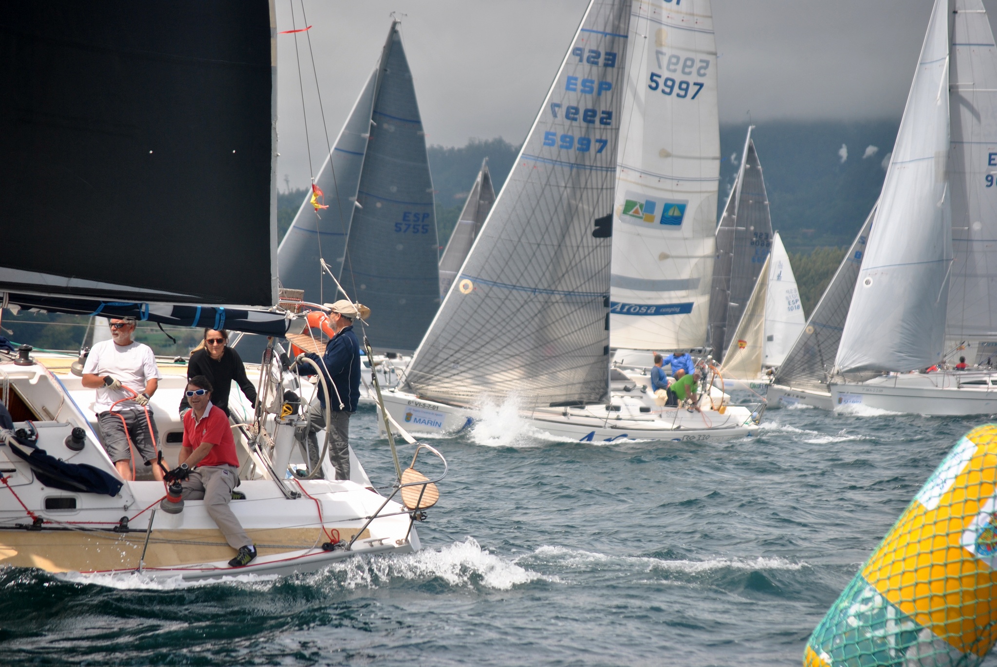 La intensa llovizna que en gran parte del día cubrió la Ría de Pontevedra no arredró a los participantes en la primera etapa de la 20ª Regata Cruceros de Aguete que a partir de las 14:00 horas partieron frente a las instalaciones del club organizador para hacer la denominada etapa “larga” sobre el clásico recorrido costero donde se ponía en juego el Trofeo Capitán de Corbeta Jaime Janer. Un evento que está siendo organizado por el Real Club de Mar Aguete y la Real Federación Española de Vela, contando además con la colaboración de la Federación Gallega de Vela y los organismos oficiales y firmas comerciales Concello y Porto de Marín, Deputación Pontevedra, Seguros Murimar, Grupo Nogar, Setga, Froiz, Carlin, Joyería Rosant y Panaderías Acuña.