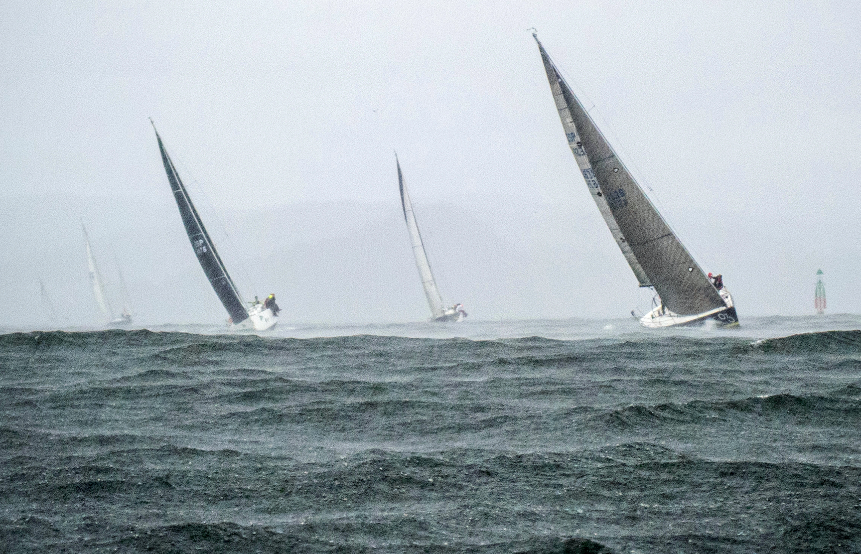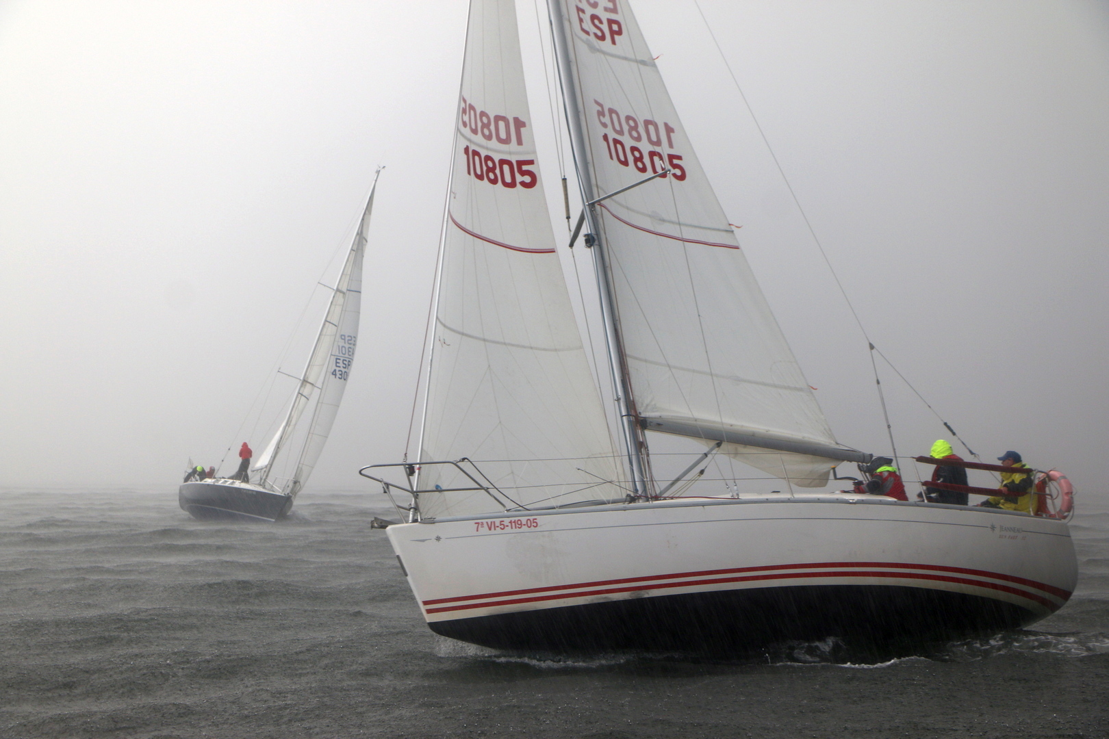 Viento más que notable del sur-sudoeste con medias de 18 nudos y rachas que llegaban hasta los 22 nudos. Menos lluvia de la prevista.