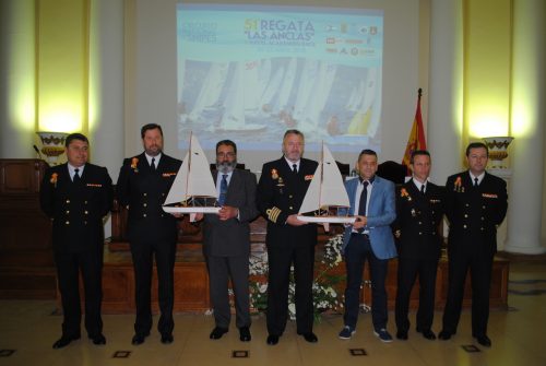 Foto con los trofeos que ganarán los vencedores de esta edición de Las Anclas, maqueta de la embarcación Snipe – Foto © Desmarque sl