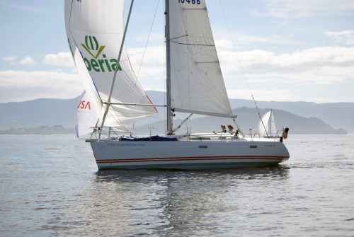 Así, tras varias horas de espera en el agua, no fue hasta pasadas las 15:15 horas de hoy cuando la flota pudo escuchar la señal de Atención para una salida situada frente a las islas Cíes y con unas condiciones de viento muy suave, aunque poco a poco fueron en aumento hasta los siete u ocho nudos de intensidad en el tramo final de la regata.