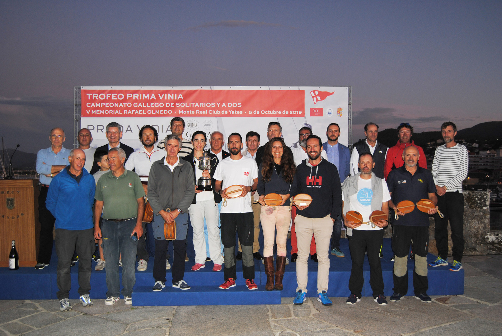 Tras finalizar la regata, la entrega de premios está prevista para las 20:00 horas en el Monte Real Club de Yates y contará con la presencia de Milton Fernández, gerente de Prima Vinia; José Luis Álvarez, presidente del MRCYB; Manuel Villaverde, presidente de la Real Federación Gallega de Vela; Santos Héctor en representación de la Diputación de Pontevedra, y Daniel Benavides, Delegado de Deportes de la Xunta en Vigo.
