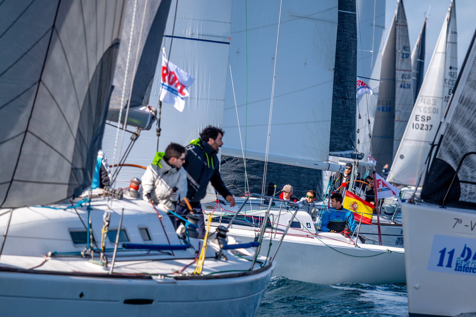 Tras la borrasca que está azotando este viernes las Rías Baixas, los partes meteorológicos prevén que el viento fuerte y la lluvia vaya amainando durante la noche para dar paso a una jornada de sábado tranquila, con vientos del suroeste de entre seis y diez nudos de intensidad. Unas condiciones perfectas con las que el Comité de Regatas podría optar por un recorrido por el interior de la ría para una flota en la que todo está aun por decidir.