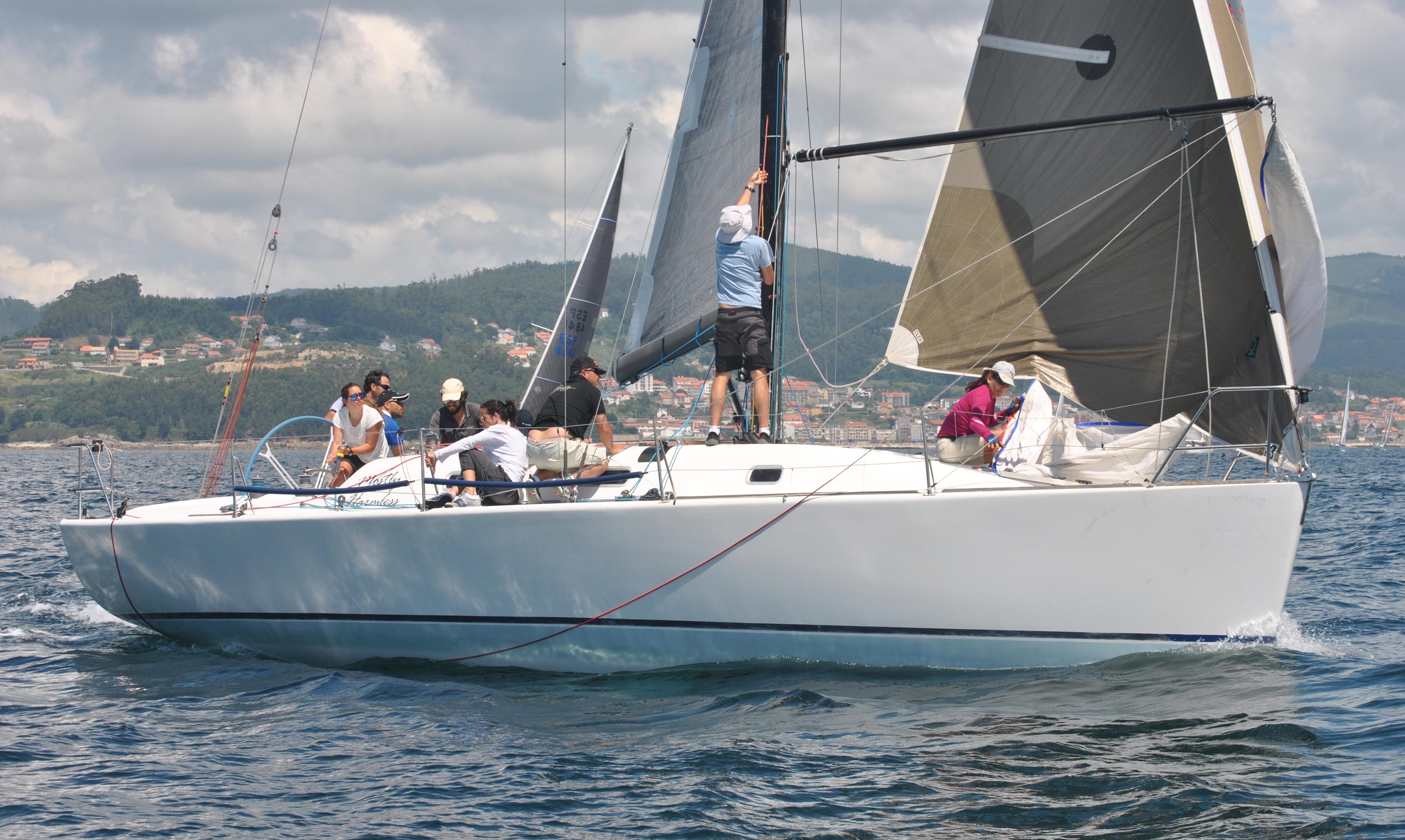 Recordemos que tras la salida de Sada, los barcos irán hasta la isla da Coelleira, ya en aguas del Cantábrico, que se virará dejándose a babor y regresando a Sada nuevamente. Precisamente en la isla da Coelleira se tomarán tiempos parciales en previsión de que luego la regata por cualquier circunstancia no pudiese finalizar en tiempo límite en Sada. O sea que ahora los barcos tendrán previsiblemente un rumbo de popa hasta el islote y una ceñida potente de regreso a Sada.