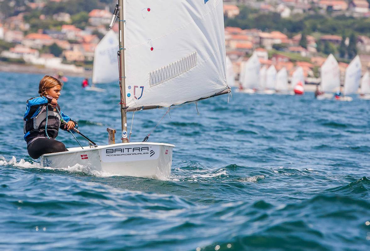 En la competición de los Optimist, los podios provisionales de las distintas categorías los ostentan Adriana Pérez Canal y Liang Jane García, de 12 y 11 años, del Club Marítimo de Canido; y el pequeño Tiago Vecino, de 10 años, del Real Club Náutico de Vigo.